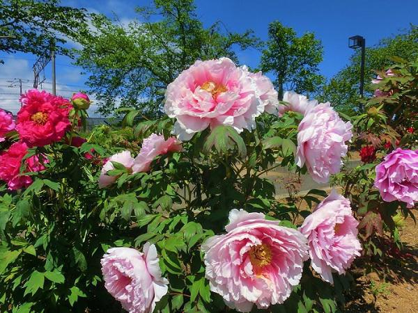 『高畠ぼたん園』が見ごろを迎えます今日現在のまほろばの緑道・公園内の 『牡丹』の開花は全体の6割ほどです(*^^)早咲きの品種は綺麗に花開いていますよ♪♪天候等により前後いたしますが、今週末ごろが見ごろの予定です!このぼたんは、毎年2月に開催している「まほろば冬咲きぼたんまつり」で展示したものを公園内に定植したものです。 樹齢的には18年前後のものからあり【260品種・820株】ほどの見ごたえのあるぼたん園となってまいりました。3密のマナーを守りながらご覧ください。
