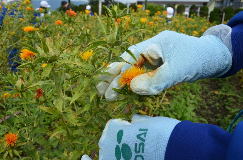 紅花の生産量日本一の白鷹町で小学生の頃から栽培から花摘み