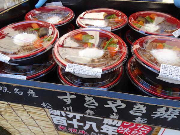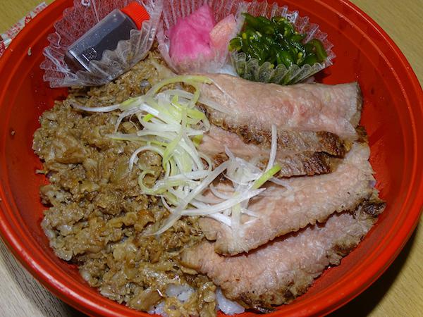 松川弁当店「米沢牛角切ステーキとすき焼き丼」