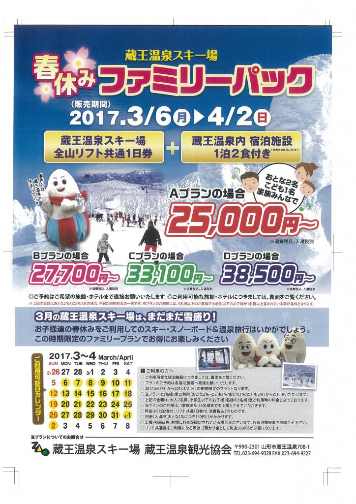 ▼3/6(月)〜4/2(日) 蔵王温泉スキー場「春休みファミリーパック」