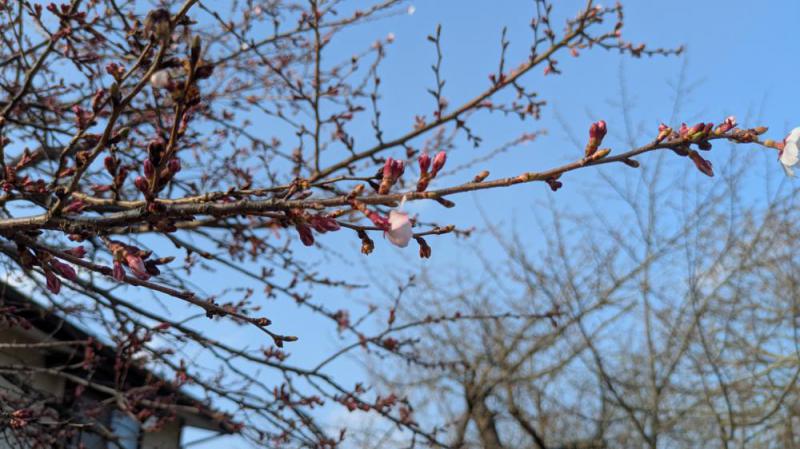 旧高畠駅で早咲きの「エドコヒガンザクラ」が開花しました。是非ご覧ください。