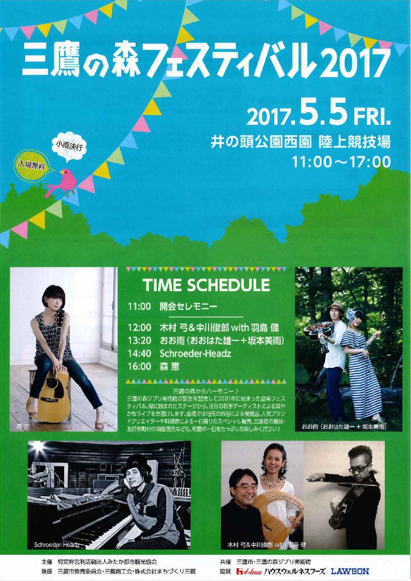 「三鷹の森フェスティバル2017」が明日5月5日(金・祝)に開催されます。