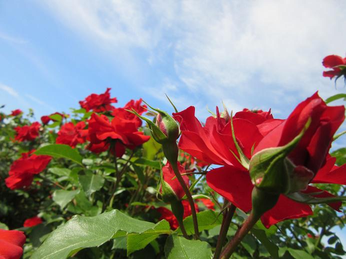 今日は朝から気持ちのいい青空です。青い空に、咲き誇る色とりどりのバラの花が大変きれいで、園内に広がる甘い香りがお出迎えしてくれます。明日土曜日は、「なりきりお姫様」のイベントで、かわいいお嬢さまのドレス姿をバラをバックに写真撮影できます。(貸衣装は無料ですが、プロの写真は有料です)日曜日11日は、バラの相談所、バラの育て方教室が開催されますので、バラの愛好家の方はぜひお越しください。