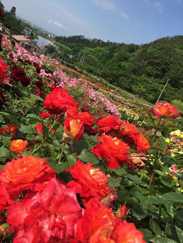 本日の東沢バラ公園の開花状況は満開です。天気も青空が広がってきました。園内は、甘いバラの香りに包まれております。目で見て、香りで感じて、舌で味わってください!!