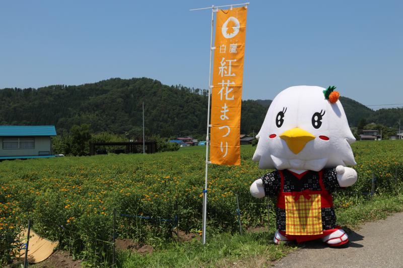 白鷹町の紅花はこれからが本番。