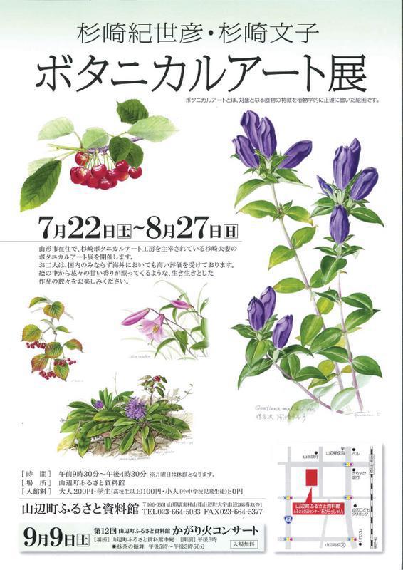 ふるさと資料館では、“杉崎紀世彦・杉崎文子ボタニカルアート展”を開催しています。「ボタニカルアート」とは、描く対象の食物の大きさや形、特徴などを詳しく正確に描いた絵画です。山形市在住の杉崎紀世彦・文子夫妻は、国内のみならず海外においても高い評価を受けております。身近な花々や果物等をありのまま生き生きと描いた杉崎夫妻の作品をお楽しみください。杉崎紀世彦・杉崎文子『ボタニカルアート展』□日時 2017年7月22日(土)〜8月27日(日)□時間 午前9時30分〜午後4時30分 ※月曜日は休館日□場所 ふるさと資料館 [TEL]023−664−5033□入館料 大人200円・学生(高校生以上)100円・小人50円