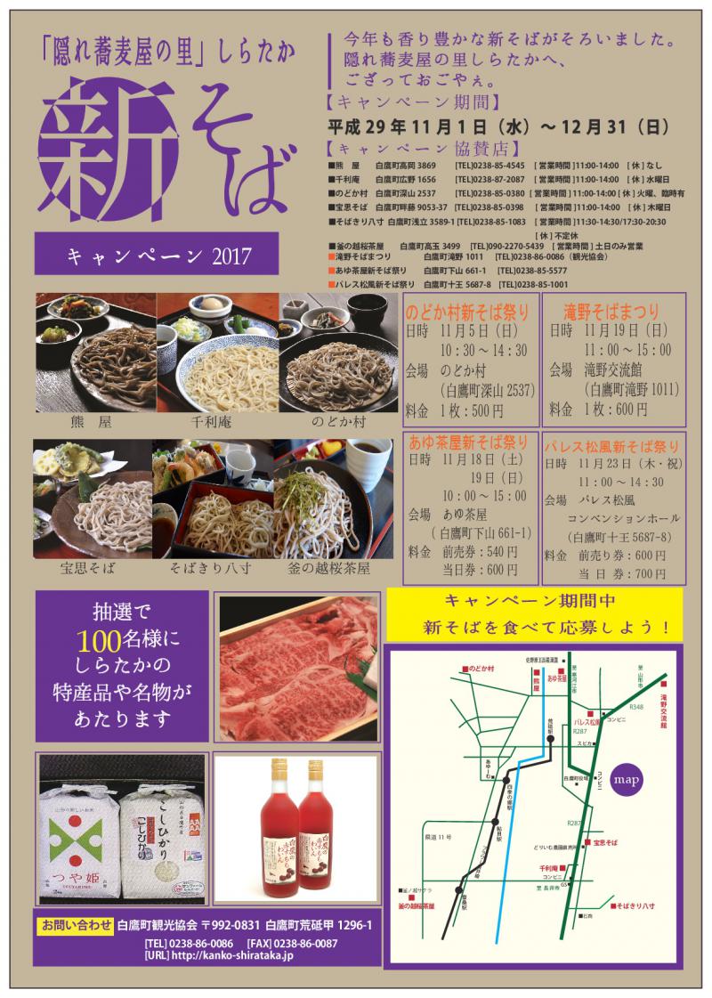 町内のお蕎麦屋さん6店舗と新そばまつり会場で新そばを食べて豪華景品をゲットしましょう