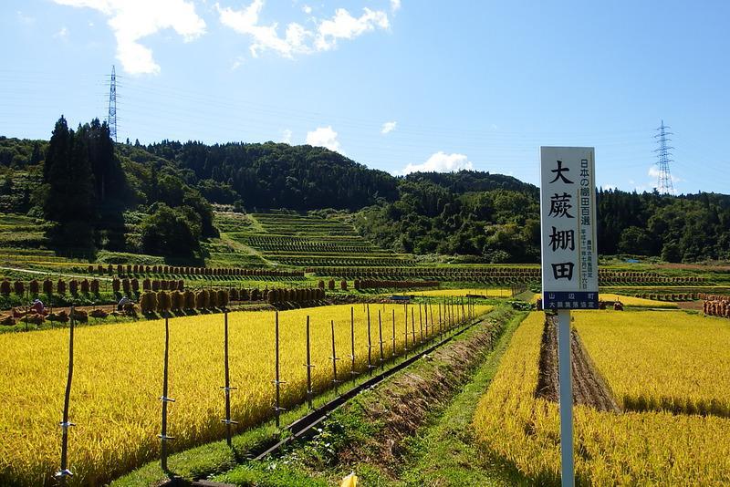 日本の棚田百選に選ばれた「大蕨の棚田」では、稲刈りが始まりました。9月19日現在は、秋晴れの下、黄金色の稲穂と稲杭が立ち並んでいます。今週末には、ほぼ稲刈りも終わり、ズラリと稲杭が立ち並ぶ昔ながらの田園風景が見られそうです。 また、大蕨の棚田では、大蕨棚田再生事業として山形市内のダンススタジオ「Dance Space」と山形交響楽団メンバーによるダンス公演“大地の声が聴こえるかい”が行われます。 大蕨棚田でダンス♪□日 時 2018年9月30日□場 所 山辺町大蕨棚田□時 間 午後4時開始□お問合せ先 山辺町役場中支所 電話:023-666-2113