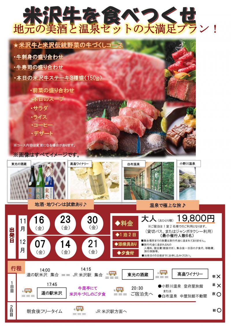 この度、酒蔵めぐりと米沢牛づくしのご夕食、温泉宿泊プランを企画いたしました!