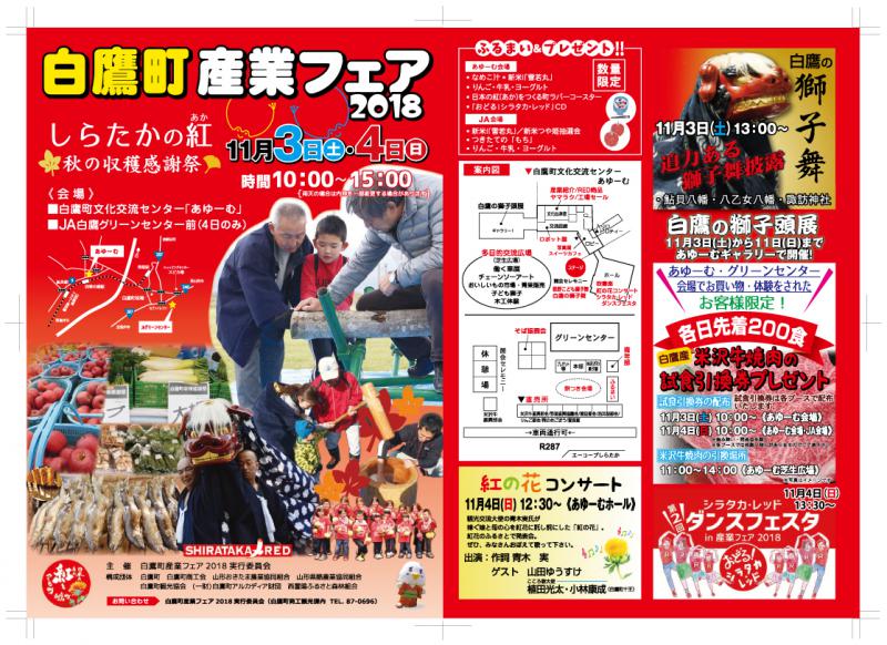 問い合わせ:白鷹町産業フェア2018実行委員会(白鷹町商工観光課内 0238-87-0696)