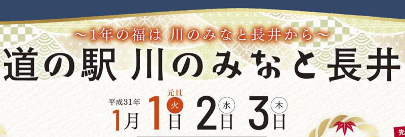 平成最後の年末年始も道の駅は休まず営業いたします!!そして今年も1月1日から3日までの三が日はかわべリング 元旦祭を開催いたします!画像クリックで大きい画像を表示 開催日:1月1日(火)〜3日(木) イベント詳細は道の駅ホームページにてご確認ください。道の駅 川のみなと長井 ■道の駅 年末年始の営業時間■1月1日(元旦) 10:00〜16:301月2日(水) 9:00〜16:301月3日(木) 9:00〜16:30(4日以降、冬季営業時間9:00〜17:00)