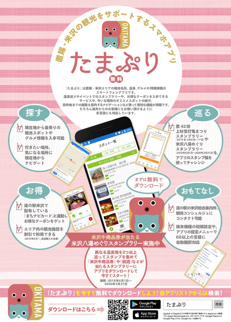 「たまぷり」をスマートフォンにダウンロードして白鷹町内の対象さくらスポット9カ所のうち4カ所を訪れチェックイン!