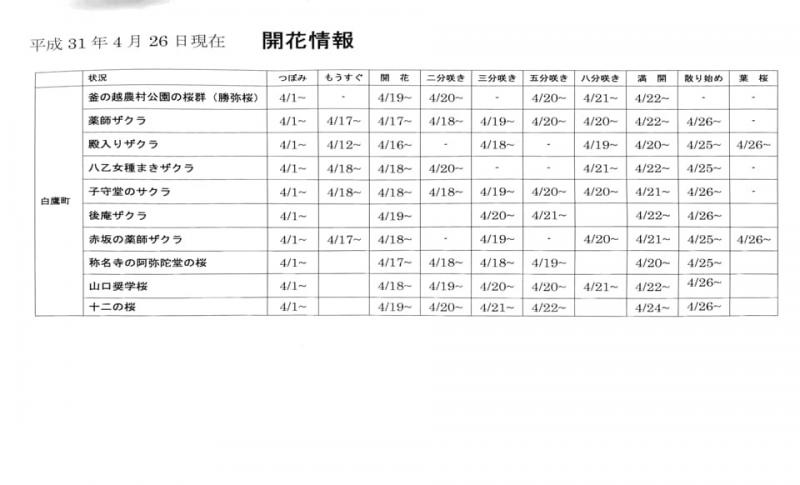 メイン会場となっている釜の越農村公園の勝弥桜は、まだ満開、頑張っています。さくらまつりは、明後日28日まで開催いたします。白鷹銘菓やお漬物、お酒などの売店もございますので、今年最後の桜をお楽しみください。