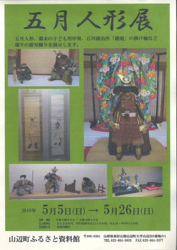 ふるさと資料館にて『五月人形展』を開催しています。五月人形は、男子の誕生を祝うとともに、健やかな成長を願い飾られます。ふるさと資料館では、歴史ある鎧や兜、勇ましい人形の数々を多数展示しています。この機会にぜひ、ふるさと資料館に足を運んでみてはいかがでしょうか! ふるさと資料館『五月人形展』□開催期間 2019年5月5日(日)〜5月26日(日) ※月曜日は休館日□開催時間 午前9時30分〜午後4時30分□入 館 料 大人200円/学生100円/子供50円□お問合せ先 山辺町ふるさと資料館 [TEL]023−664−5033