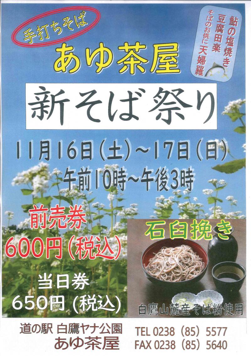 あゆ茶屋から新そば祭りのチラシが届きました。