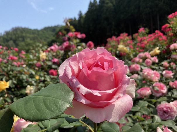 6月15日月曜日 今日もとてもいい天気でです。昨日の雨で若干花が落ちましたが、まだまだ見頃です。バラにとっては恵みの雨となりました。入り口付近の売店の前ではバラの苗木も販売しております。