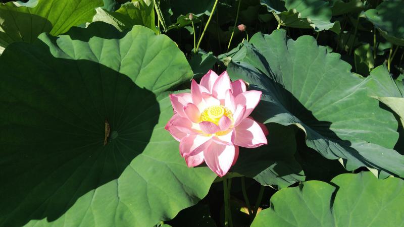朝の清々しい中で咲く蓮の花はとても綺麗です。