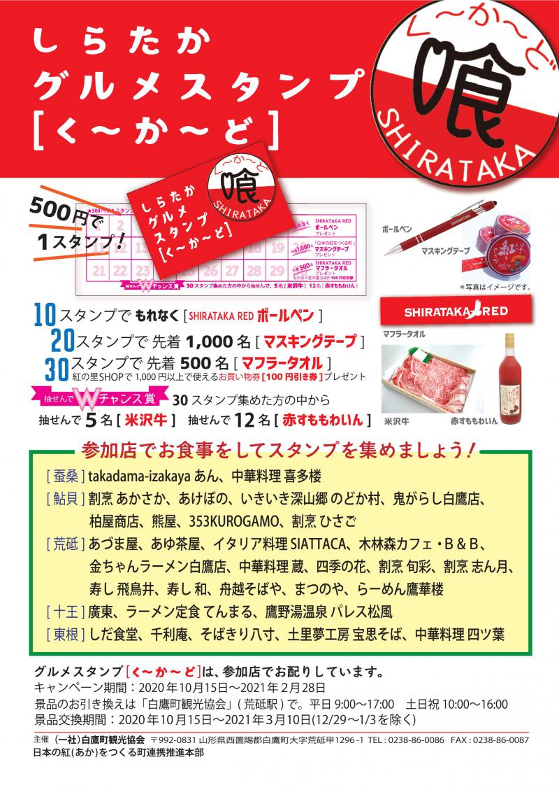 白鷹町の飲食店共通のスタンプカード「く〜か〜ど」が始まります。