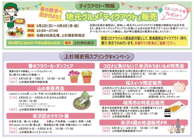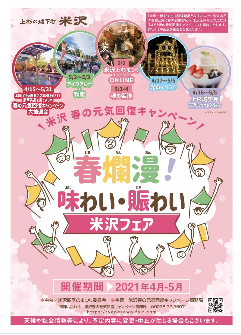 毎年春に開催される「米沢上杉まつり」は、新型コロナウイルス感染症の状況を鑑み、開催延期となりましたが、米沢市民の皆様と共に春の到来を祝い、米沢全体が元気になれるよう「春の元気回復キャンペーン」を実施いたします!