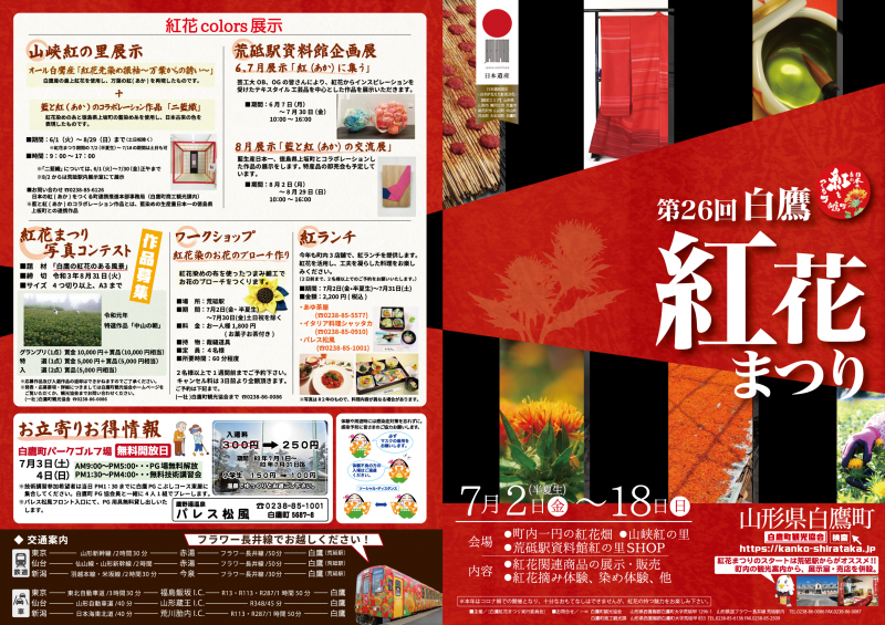 会場は、町内一円の紅花畑、山峡紅の里、荒砥駅資料館紅の里SHOPとなっており