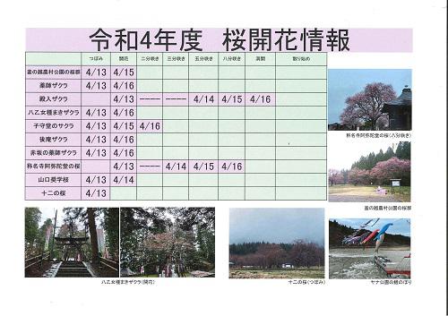 ▼令和4年度 白鷹町さくら開花情報