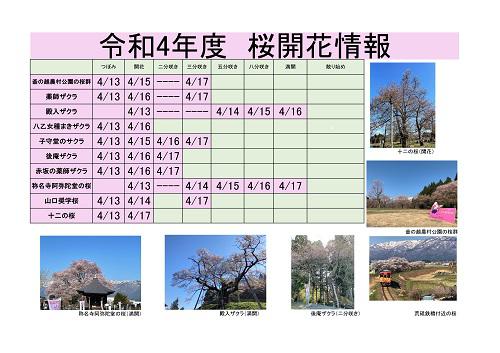 ▼令和4年度 白鷹町さくら開花情報