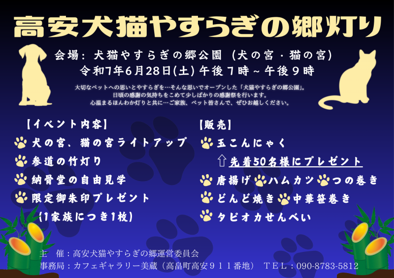 ▼6/28 高安犬猫やすらぎの郷灯り 開催!