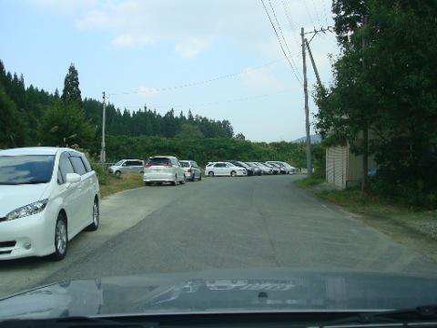 連休の最終日、栗園への訪問者で車がいっぱい。