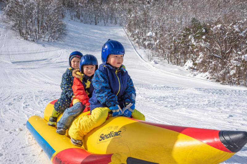 ▼キッズランドでバナナボートに乗ろう!(天童高原スキー場)