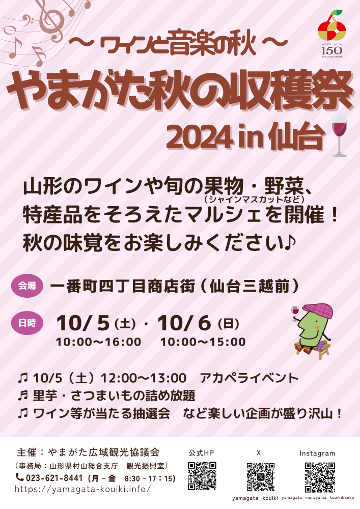 ▼【R6.10.3更新】〜ワインと音楽の秋〜やまがた秋の収穫祭 2024 in 仙台の開催について