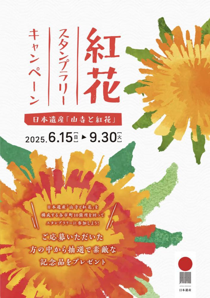 ▼日本遺産「山寺と紅花」紅花スタンプラリーキャンペーン
