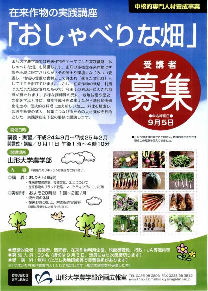 平成24年度「おしゃべりな畑」実践講座の受講生募集!:ヤマガタンAnnex|山形の農業〜農林水産
