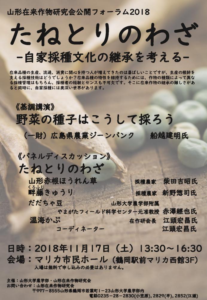 ▼今年の山形在来作物研究会公開フォーラム開催のお知らせ