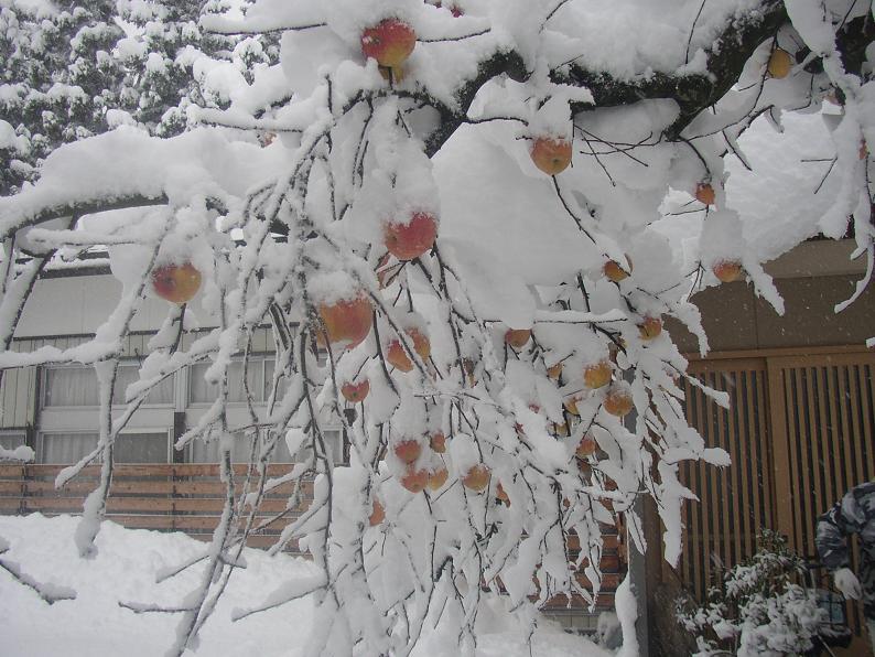 雪にあてたほうが・・といえば、リンゴなどの果物も一緒だ。我が家の庭先のリンゴも雪をかぶったままぶら下がっている。これは仕事の遅れとは関係なく、あくまで風味、美味さをねらってのことで意図的だ。