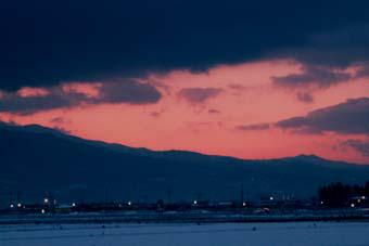まだ周囲は暗いが、何か・・・染物のベニバナ色っていう感じかなぁ。。。
