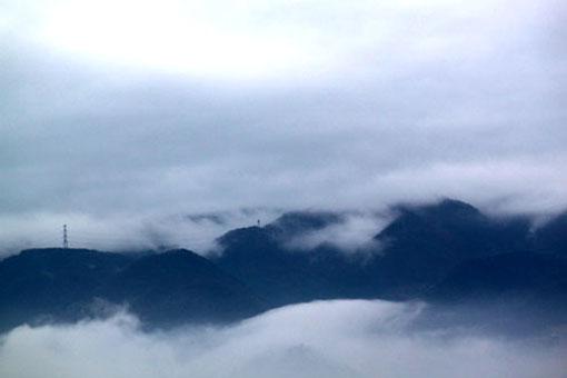 東の山々は霧や雲に隠されていたが、西からは晴れ間が迫ってくるし、