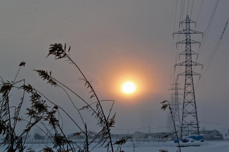 今朝の様な色もアリ、また、青暗い鉛色の雪雲に覆われたりする。