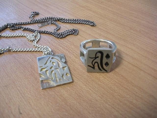 いま訳あって趣味のシルバーアクセサリー製作はお休みしております。 これまでにけっこうな数を作ってきましたが、 私はやはり自分で身に付けるものは 梵字をデザインしたものが好きです。 梵字には意味があり、 それぞれの干支にちなんだ神様が表されているそうです。 ちなみに画像にアップしたのは休日身につける指輪とペンダント この文字は「キリーク」と呼ばれ 戌年・亥年の守護尊「阿弥陀如来」を表しているそうです。 お守りがわりに見つけております。