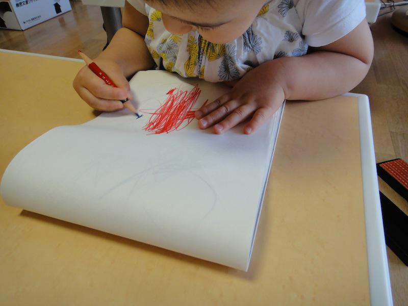 色が出るので嬉しくて闇雲に色鉛筆を走らせているのをみて