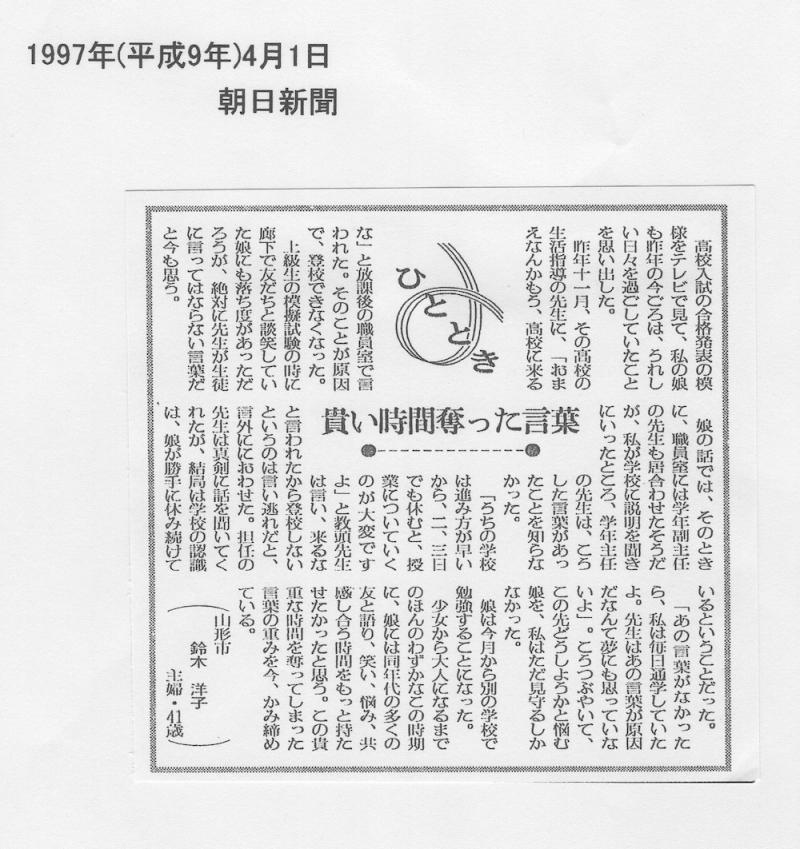 「お前なんか○○高の生徒じゃない。もう来るな」