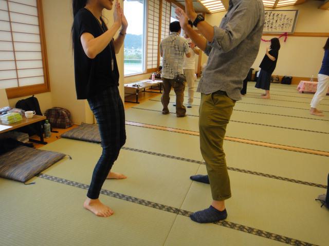 今年の気づきのワークは、なんと企業からの参加者がいたのです!!春先に安全大会でメンタルヘルスの話をさせていただいた会社さんに「自分に気づくセミナー」をやりますよ、と話しに行ったところ「メンタル面って大事なんだよね。先日の話聞いてつくづく思ったんだ。今までそういう視点が無かった。」と、会長さんが熱心に話して下さり三人の社員さんを会社持ちで参加させて下さいました。夜のノミュニケーション(風呂上がりの懇親会)で、三人は口々に、「いやあ、何じゃこれは?」「何をするの?」「赤紙が来たみたい」と不安だった様子を話してくれました。(私が聞いたんですけど)でも、会場を地図に見立て自分はどこにいるか表現したり、二人組で、押し合いながら「イエス・ノー」を言い合ったり、個人ワークをみてなんだか分からないけど、気持ちが揺さぶられたりなんじゃこれ、と思いながらでしょうが一緒にエクササイズをしてくれました。そして、最後のチェックアウトでは、こんな言葉を残してくれました。「今まで、頭でしかみていなかった。現場とか工程とかそういう面で考えていたが自分の心をみることも必要なと思った。コミュニケーションはどんな場所でも有効だ。なりたい自分になるイメージを描くことができた。」きっと同じ仕事に向き合う時も、以前とは違った目線でみることができると思います。派遣して下さった企業様参加して下さった三人の方、ありがとうございました。
