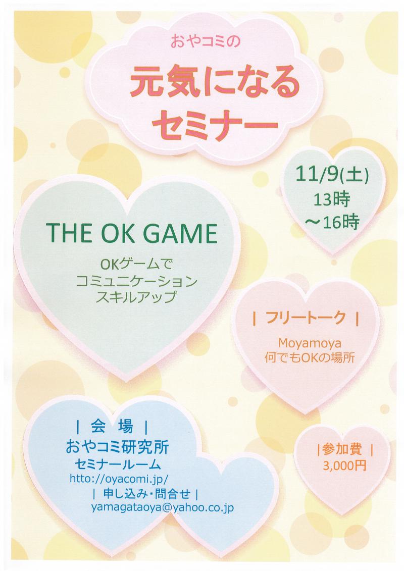 おやコミの元気になるセミナー【THE OK GAME】を開催します。