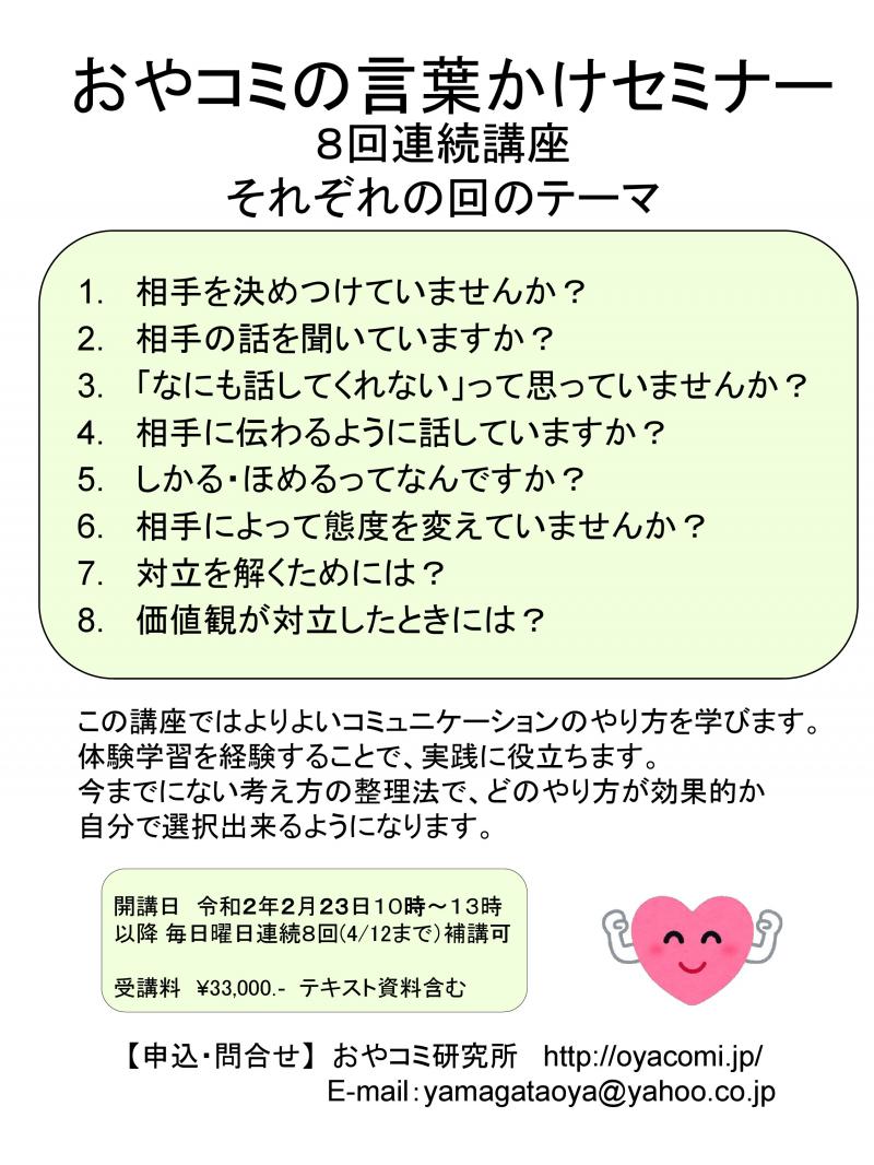 令和2年早春に、「言葉かけセミナー」を開催します。