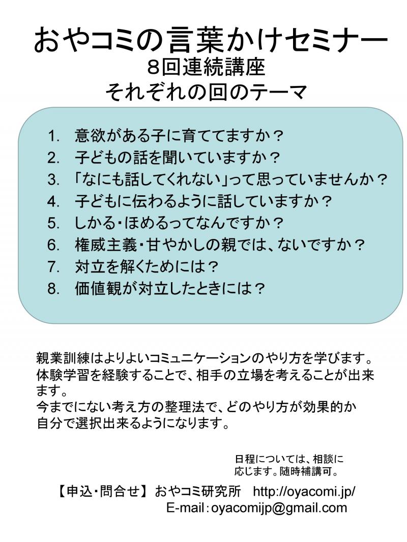 ぜひ受講したいという声があり、急遽親業訓練講座を開講します。