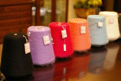 店内にあるディスプレイ「峯田メリヤスさん製(山辺町)」で