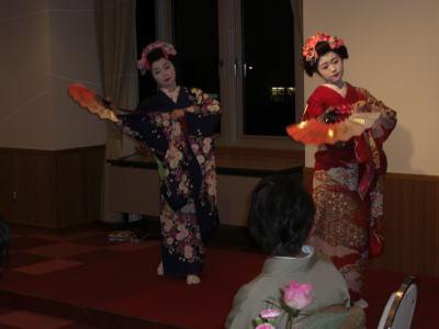 話題の山形舞妓のお二人をゲストにお呼びして、UP写真のようにホテルステージにてお座敷舞を若さ一杯で熱演して頂きました!