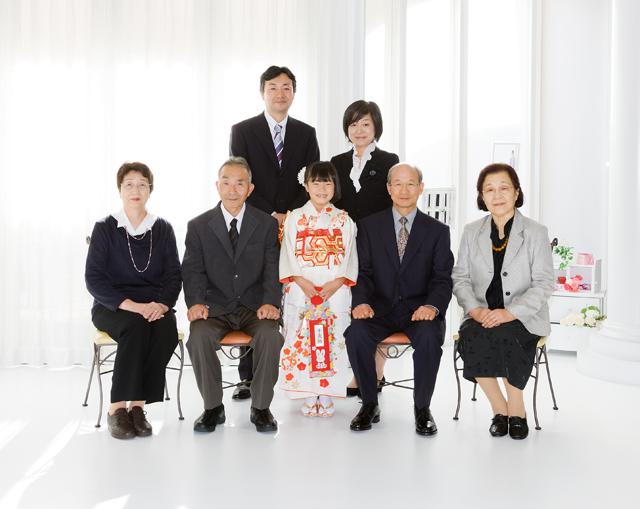 七五三のお祝いに、おじいちゃんおばあちゃんもみんな一緒に