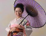 同色の舞踊傘を重ね、銅金を思わせる重厚な西陣袋帯が対となって・・・