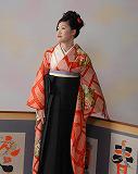 朱色の特選振袖に漆黒の米織袴は、最高の『朱黒』の取り合わせとなるでしょう!