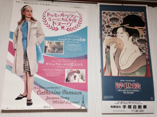 いつもは、毎年もらっていた暦でしたが。町工場さんから歌磨呂集の暦を!浮世絵美人画なら春信、一番は北齋ですが、かなり嬉しいです。隣がドヌーブのシェルブールのリマスタリングの劇場用ポスター、日仏の相性の良さ。天国からゴッホも見守ってくれそうで。